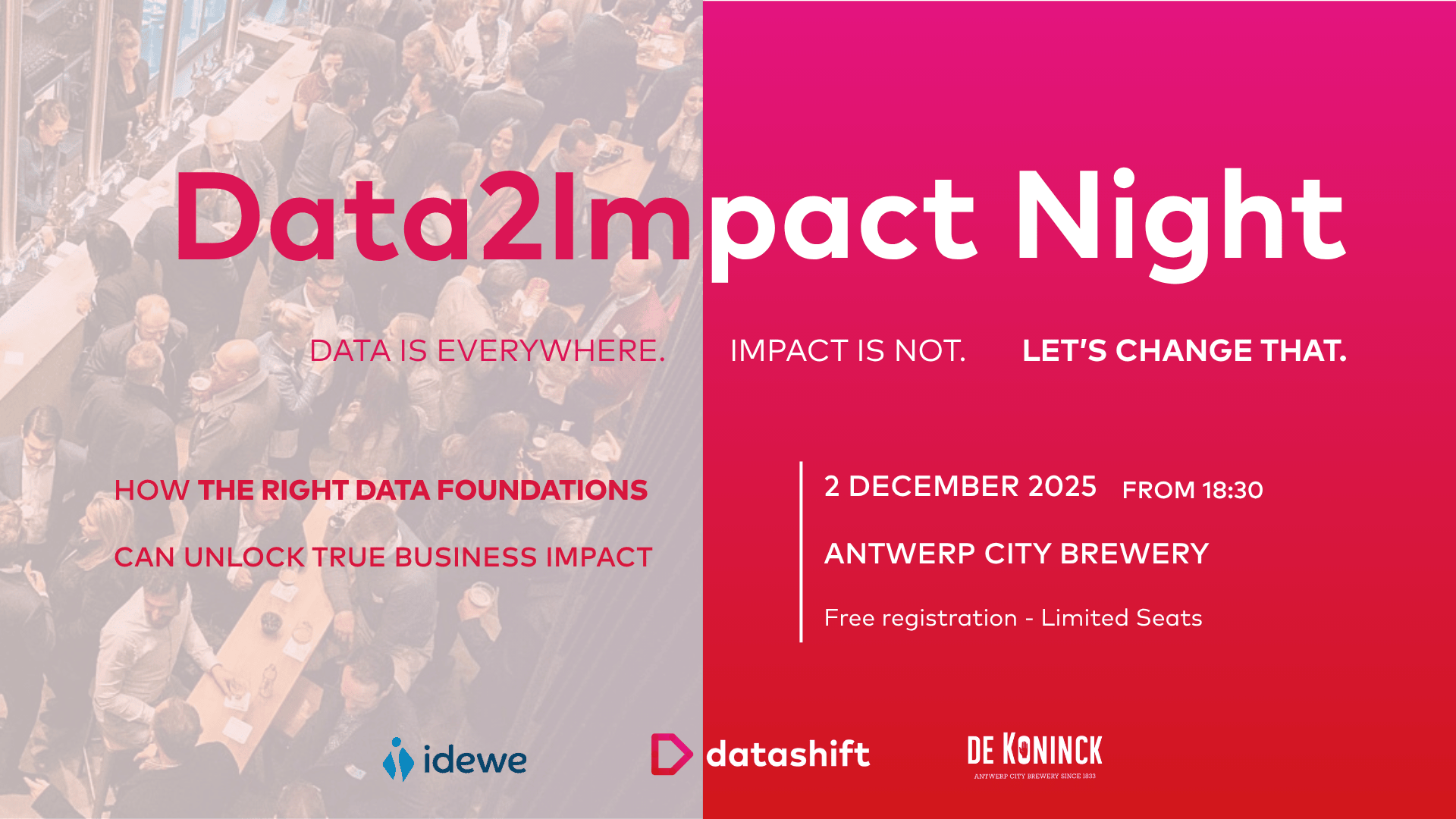 At this edition of Data2Impact Night, we’re bringing together industry leaders, data innovators, and forward-thinkers to challenge assumptions, spark ideas, and explore how excellence in the fundamentals unlocks real business impact.