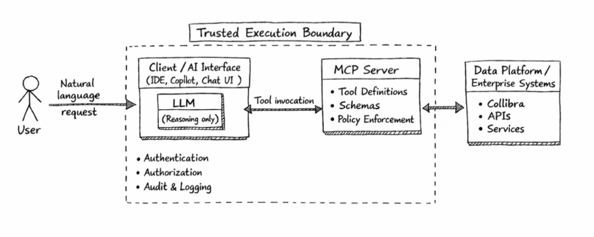 From a technical perspective, treat MCP as an interface layer, not a governance layer. Your existing tools—Collibra for metadata, AWS Lake Formation for permissions—should still enforce policies and controls. MCP makes that information easier to access through natural language.