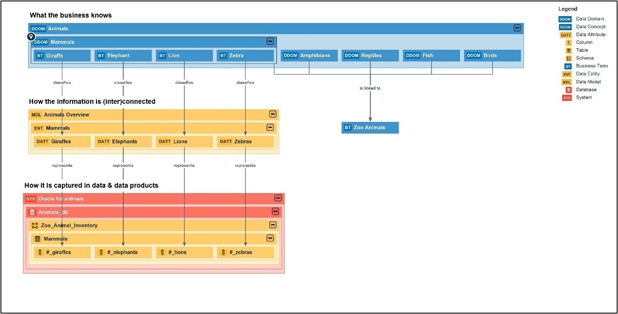 A key part of effective Data Governance is having clear ownership of your data. Centralizing Data Governance in Collibra streamlines the assignment and management of not only data owners, but ? as opposed to most other tools ? also includes risk owners, AI model owners,? It provides a single platform where roles and responsibilities can be clearly defined, documented, and easily updated. It facilitates communication and collaboration between owners, their stewards, and users, as all interactions can be tracked and managed within the same system via workflows and comments. The traceability diagram below clearly shows how Collibra is connecting the traditional silo?s of the Business Glossary, Logical Data Dictionary and the Physical Data Dictionary: