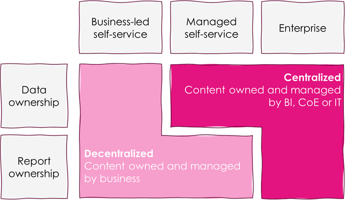 The clearer your current governance model, the more straightforward this decision will likely be. In an enterprise governance model, for example, the members of the BI Centre of Excellence are probably good candidates to take over. For business-led self-service, champions in business units could be put in charge.